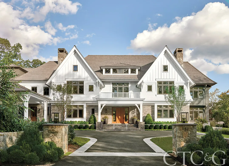 When a couple decided to start from the ground up instead of renovating their Westport property, they knew exactly whom to call. Having completed a project—an apartment in Chicago—for them previously, Chicago-based Steve Kadlec, of Kadlec Architecture + Design, was top of the homeowners’ list. “Our previous home had been much more traditional colonial clapboard, and now that we had the opportunity to start from scratch, it was very exciting to get something that we wanted,” says the homeowner. “My vision was something that would still be appropriate for a New England setting but feel contemporary, fresh, and comfortable for a family with three boys. Kadlec came on board after the couple had hired Connecticut-based, architect-led, design-build firm Vita Design Group. “VitaDesign had done the layout and exterior elevations, and we tweaked some of the planning and specified the interior finishes and millwork details,” explains Kadlec. “We had done contemporary for the client in Chicago, and they liked that and wanted to avoid some of the trappings of an East Coast home without it being out of place.” While the exterior of the home has a distinct East Coast vibe, the interior shifts to a more contemporary feel. Details like door profiles and trimwork have all the elements of a traditional home but are rendered in a simple way so that it seems less fussy and ornate. A limited color palette allows rooms to flow quietly from one to another, while varied textures and materials add depth and warmth. (See more.)
